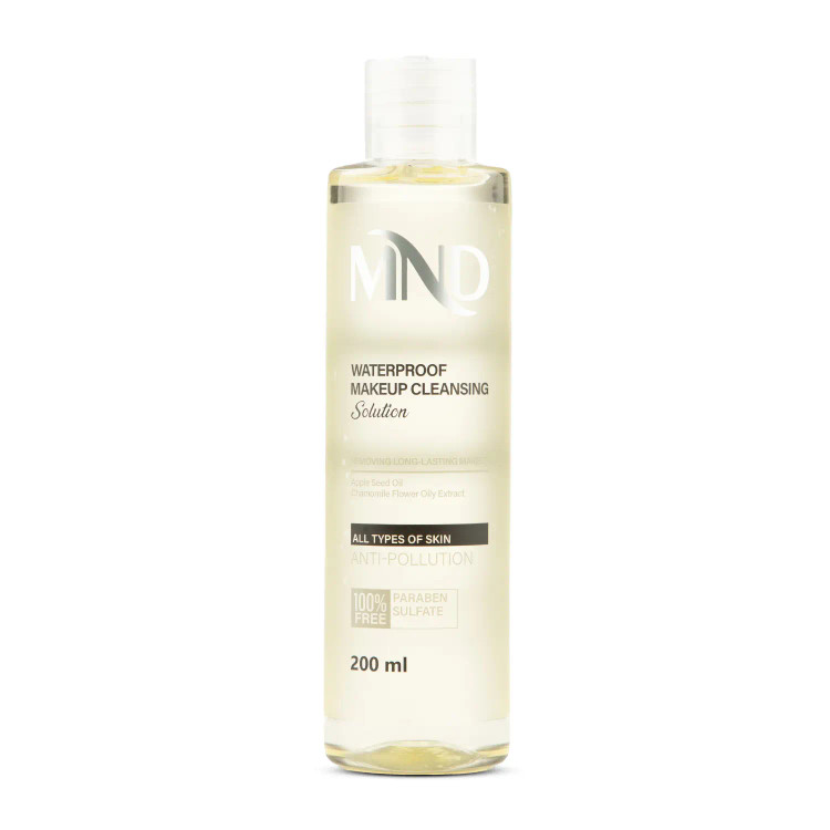 محلول پاک کننده آرایش ضدآب مناسب انواع پوست ام ان دی 200 میلیلیتر