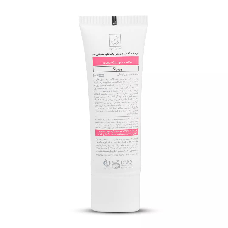 کرم ضد آفتاب فیزیکی با فاکتور حفاظتی 20 (SPF 20) مناسب پوست حساس ام ان دی 40 میلیلیتر