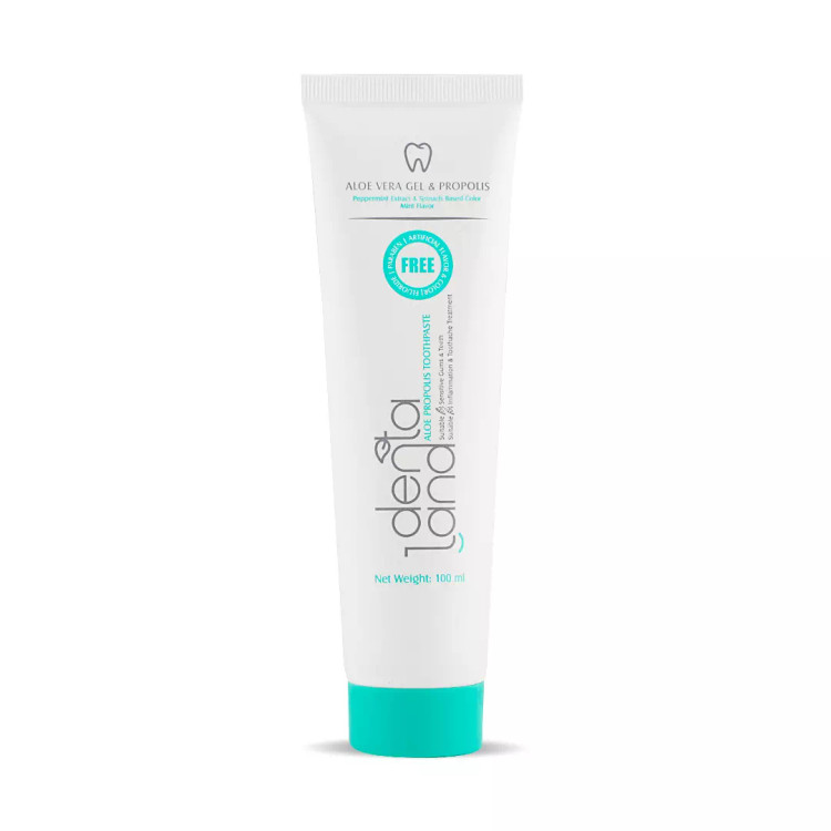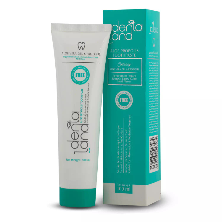 ژل آلوئه ورای طبیعی بکار رفته در خمیر دندان آلوپروپولیس دنتالند التهاب لثه را کم کرده و موجب کاهش خشکی دهان میشود. این ژل طبیعی همچنین قادر است از فعالیت باکتریهای ایجادکننده بوی نامطبوع دهان جلوگیری کند که بسیار در خوشبو شدن نفس فرد تاثیرگذار است. این خمیردندان عصاره بره موم (پروپولیس) که سرشار از ویتامینها و مواد معدنی مفید است را نیز در خود دارد که باعث تقویت مینا و جلوگیری از پوسیدگی دندان شده، سلامت لثه را تقویت کرده و به عنوان یک ماده طبیعی با قابلیت ضد باکتری بسیار زیاد باعث از بین رفتن التهابات و بیماریهای لثه میشود. باید خاطرنشان شد که رنگ خوراکی طبیعی بکار رفته در این محصول نیز از گیاه اسفناج بدست آمده است که علاوه بر طبیعی بودن دارای خواص آنتی اکسیدانی میباشد و باعث افزایش کارایی این خمیردندان شده است.