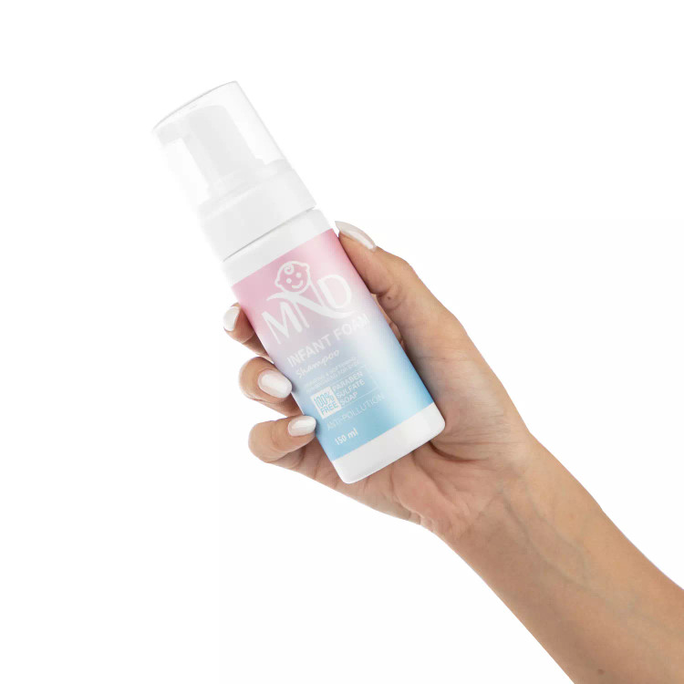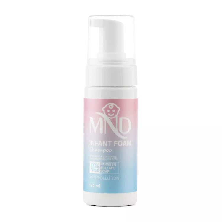 نوزاد معمولا موی کوتاه و کم پشت داشته و تقریبا میشود گفت پوست سر نوزاد کاملا در تماس با محیط پیرامون است و یک شامپو مناسب برای سر نوزاد میتواند برای شستن سایر نواحی وی هم استفاده شود. اما باید به این نکته توجه کرد که نوزاد به دلیل اینکه هنوز درکی از محیط پیرامون نداشته و متوجه کلام والدین خود نیست نمیتوان انتظار داشت تا در زمان شستشوی پوست او حرکت نکرده و جابجا نشود. بنابراین نمیتوان بهراحتی از محصولات شوینده با آبکشی متداول برای تمیزکردن نوزاد استفاده کرد چون احتمال ورود شامپو به چشم و دهان و نارحت شدن نوزاد وجود دارد. بهترین گزینه برای نوزاد استفاده از شویندههای فومی است که به دلیل فوم بودن، جاری شوندگی کمی داشته و این امکان را به والدین میدهند تا با اطمینان بیشتری سر و بدن نوزاد را بشویند بدون اینکه نگران ورود ترکیبات پاککننده به چشم و دهان جگرگوشه خود باشند. شامپوهای فومی بهراحتی مو، کف سر و بدن نوزاد را که جسم کوچکی هم دارد شسته و بدون ناراحت کردن او میتواند موجب تمیز شدن نوزاد شود. شامپو فوم نوزاد MND با داشتن ترکیبات پاککننده بسیار ملایم و نداشتن سولفات و صابون بهترین گزینه برای این امر است. همچنین به دلیل بهرهبری از گلیسرین، دکسپانتنول، سدیم پیسیای و عصاره آلوئهورا بهراحتی رطوبت پوست نوزاد را تامین میکند تا خارش و یا ناراحتی در پوست به وجود نیاید. در این شامپو از عصاره بره موم که خاصیت آنتیاکسیدانی و کاهش دهنده فعالیت باکتریها را دارد هم استفاده شده است تا پوست نوزاد که هنوز به محیط پیرامون و موجودات میکروسکوپی عادت نکرده، تحت تاثیر آنها قرار نگیرد. همچنین با توجه به اینکه پوست بدن نوزاد با سطوح مختلف پیرامون برخورد داشته و تحت تاثیر آلودگی پیرامونی مثل فلزات سنگین معلق در جو، گرد و غبار و... قرار دارد، باید از ترکیبات محافظت کننده دربرابر آلودگی همانند عصاره ریشه سرخارگل و ترکیبات کاهنده التهاب مانند نیاسینامید و آنتی اکسیدانی مثل عصاره چای سبز نیز در محصول استفاده میشد تا بهترین مراقبت از پوست نوزاد به عمل آید.