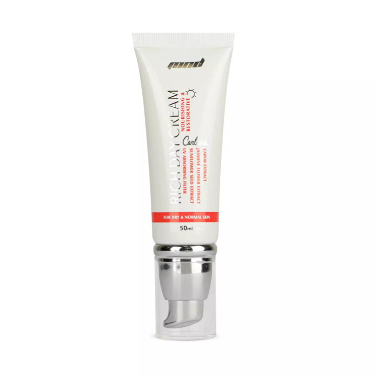 شماره پروانه بهداشتی ساخت: 56/20350 ؛ کرم روز مغذی و تقویت کننده پوست (Rich Day Cream) دارای عصارههای طبیعی خاصی است که سرشار از ترکیبات مفید همچون پلیساکاریدها، فلاونولها و پلیفنولها هستند که موجب احیا و جوانسازی پوست خشک و نرمال میشوند.