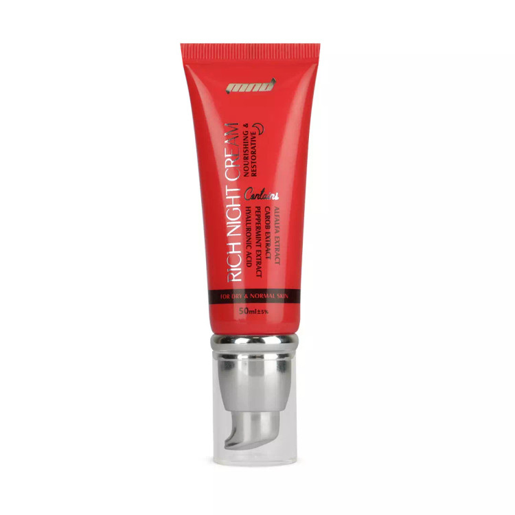 شماره پروانه بهداشتی ساخت: 56/20351 ؛ کرم شب مغذی و تقویت کننده پوست (Rich Night Cream) دارای عصارههای طبیعی خاصی است که سرشار از ترکیبات مفید همچون پلیساکاریدها، فلاوانونها هستند که موجب احیا و جوانسازی پوست خشک و نرمال میشوند.