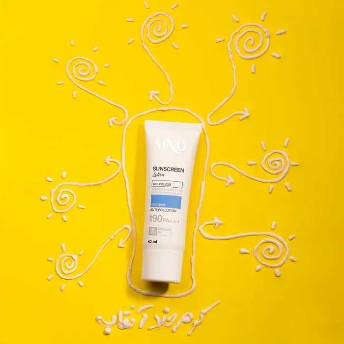 لوسیون ضد آفتاب با فاکتور حفاظتی 90 (SPF 90) بی رنگ ام ان دی مناسب پوست چرب