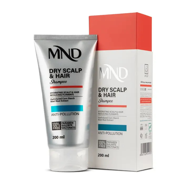 شامپو مناسب پوست سر و مو خشک MND با ترکیبات شوینده ملایم تولید شده تا ترکیبات روغن دوست کف سر و مو را کم نکرده و موجب تشدید شرایط نشود. این شامپو حاوی ترکیبات رطوبترسان مانند اریتریتول، دکسپانتنول و سدیم پیسیای است تا رطوبت مو و کف سر به سرعت افزایش یافته و وزی مو کاهش یابد. البته در این شامپو گلیسرین و زایلیتول هم وجود دارند که اثبات شده است که کاهنده التهاب بوده و خارش کف سر را کم میکنند. استفاده همزمان ازعصاره ریشه چغندر به همراه نشاسته هیدرولیزشده ذرت نیز این امکان را به محصول داده است که بتواند همزمان رطوبت پوست و مو را افزایش داده و در عین حال شانهپذیری موها را بهبود دهد. حضور فیتواستریل-اکتیل دودسیل لائوریل گلوتامات در این شامپو نیز باعث شده تا رطوبت در سطح پوست و مو محبوس شده و مو نرم و لطیف شود. به منظور محافظت کامل دربرابر آلودگی پیرامون افراد هم از عصاره ریشه سرخارگل بهره گرفته شده تا آلودگی نتواند باعث تداخل در روند بهبود خشکی کف سر و موی افراد شود.