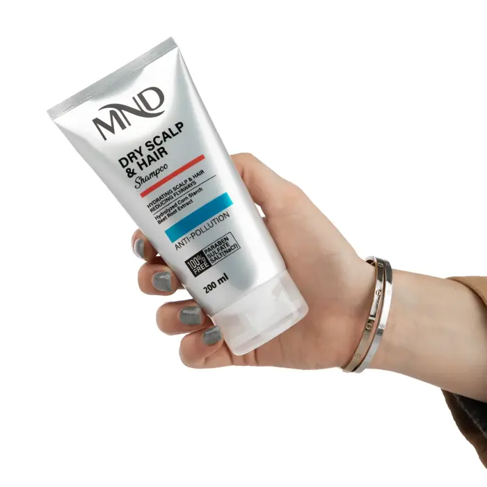 شامپو مناسب پوست سر و مو خشک MND با ترکیبات شوینده ملایم تولید شده تا ترکیبات روغن دوست کف سر و مو را کم نکرده و موجب تشدید شرایط نشود. این شامپو حاوی ترکیبات رطوبترسان مانند اریتریتول، دکسپانتنول و سدیم پیسیای است تا رطوبت مو و کف سر به سرعت افزایش یافته و وزی مو کاهش یابد. البته در این شامپو گلیسرین و زایلیتول هم وجود دارند که اثبات شده است که کاهنده التهاب بوده و خارش کف سر را کم میکنند. استفاده همزمان ازعصاره ریشه چغندر به همراه نشاسته هیدرولیزشده ذرت نیز این امکان را به محصول داده است که بتواند همزمان رطوبت پوست و مو را افزایش داده و در عین حال شانهپذیری موها را بهبود دهد. حضور فیتواستریل-اکتیل دودسیل لائوریل گلوتامات در این شامپو نیز باعث شده تا رطوبت در سطح پوست و مو محبوس شده و مو نرم و لطیف شود. به منظور محافظت کامل دربرابر آلودگی پیرامون افراد هم از عصاره ریشه سرخارگل بهره گرفته شده تا آلودگی نتواند باعث تداخل در روند بهبود خشکی کف سر و موی افراد شود.