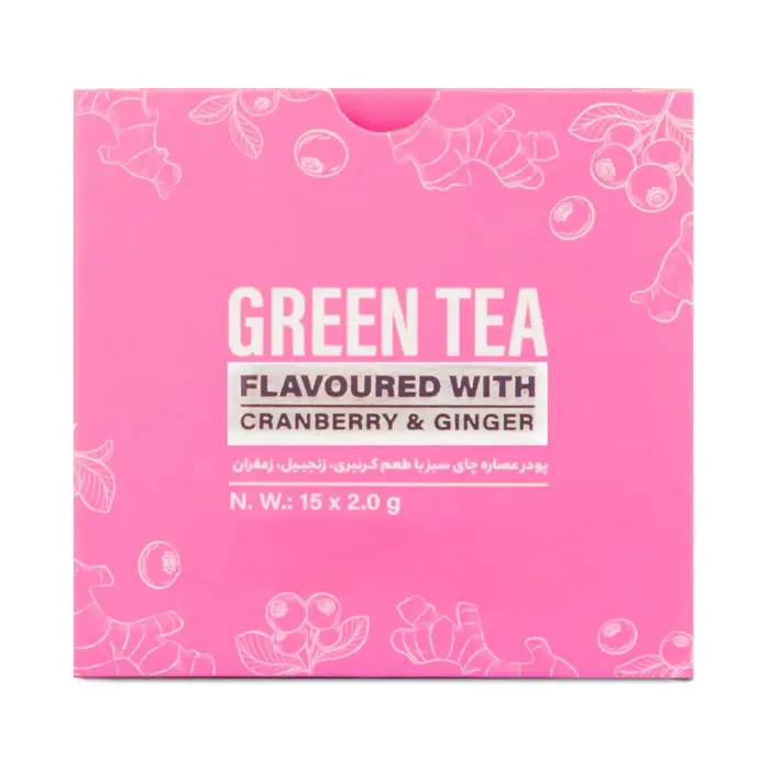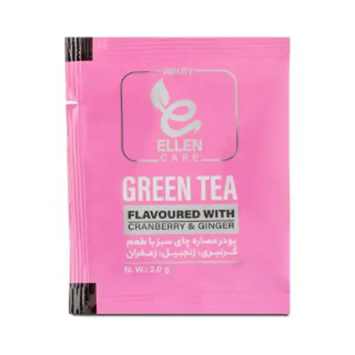 پودر عصاره چای سبز الن کر با طعم کرنبری، زنجبیل و زعفران بسته 15 عددی