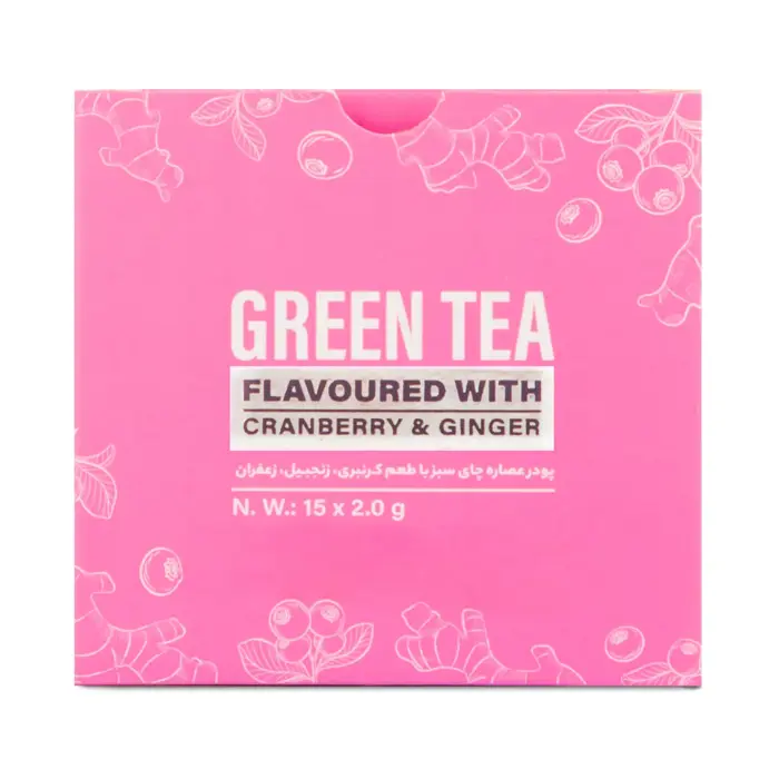 پودر عصاره چای سبز الن کر با طعم کرنبری، زنجبیل و زعفران بسته 15 عددی